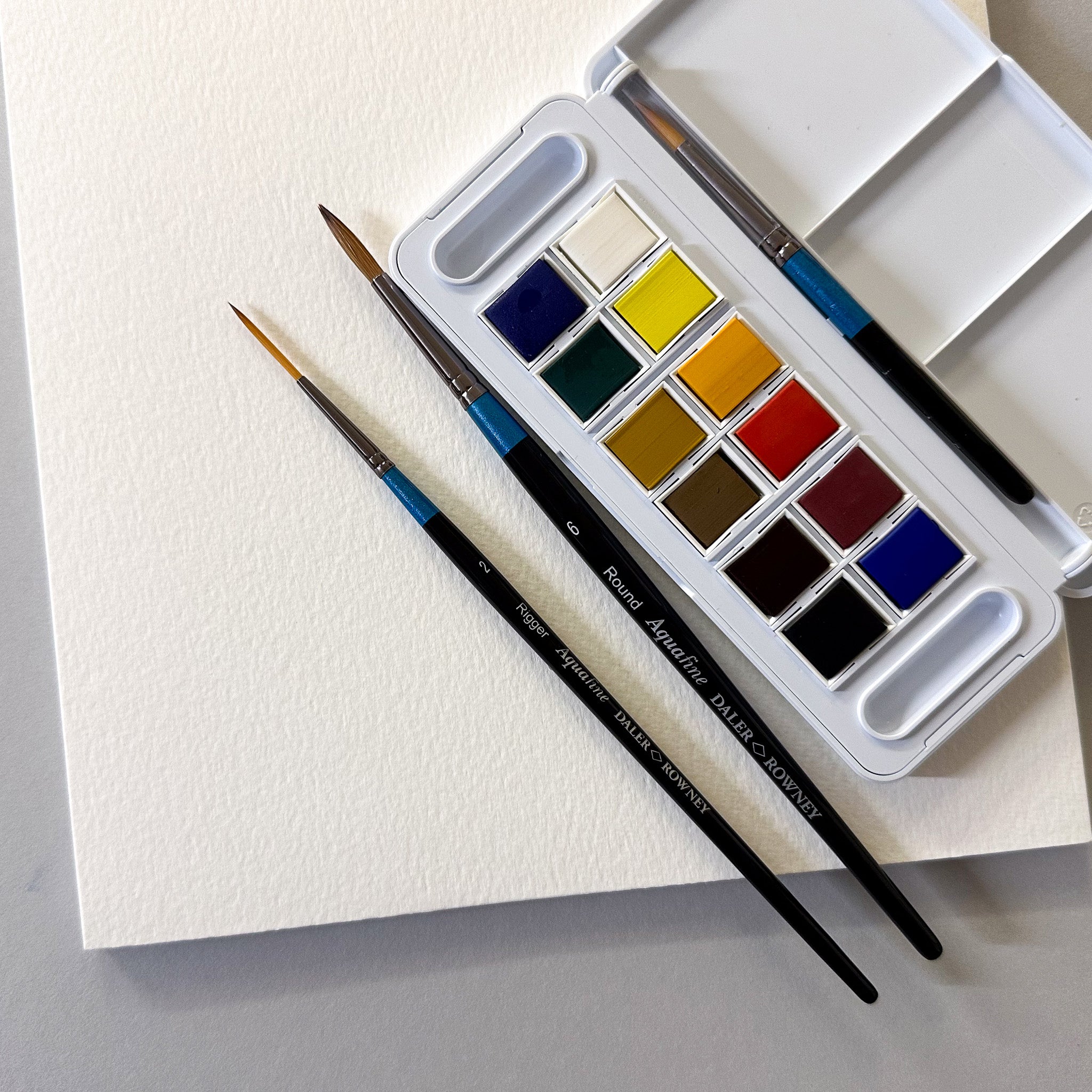 1 set of 301 Daler Rowney Aquafine Brushes: 1 x Round 6, 1 x Round 10, 1 x Rigger 2
