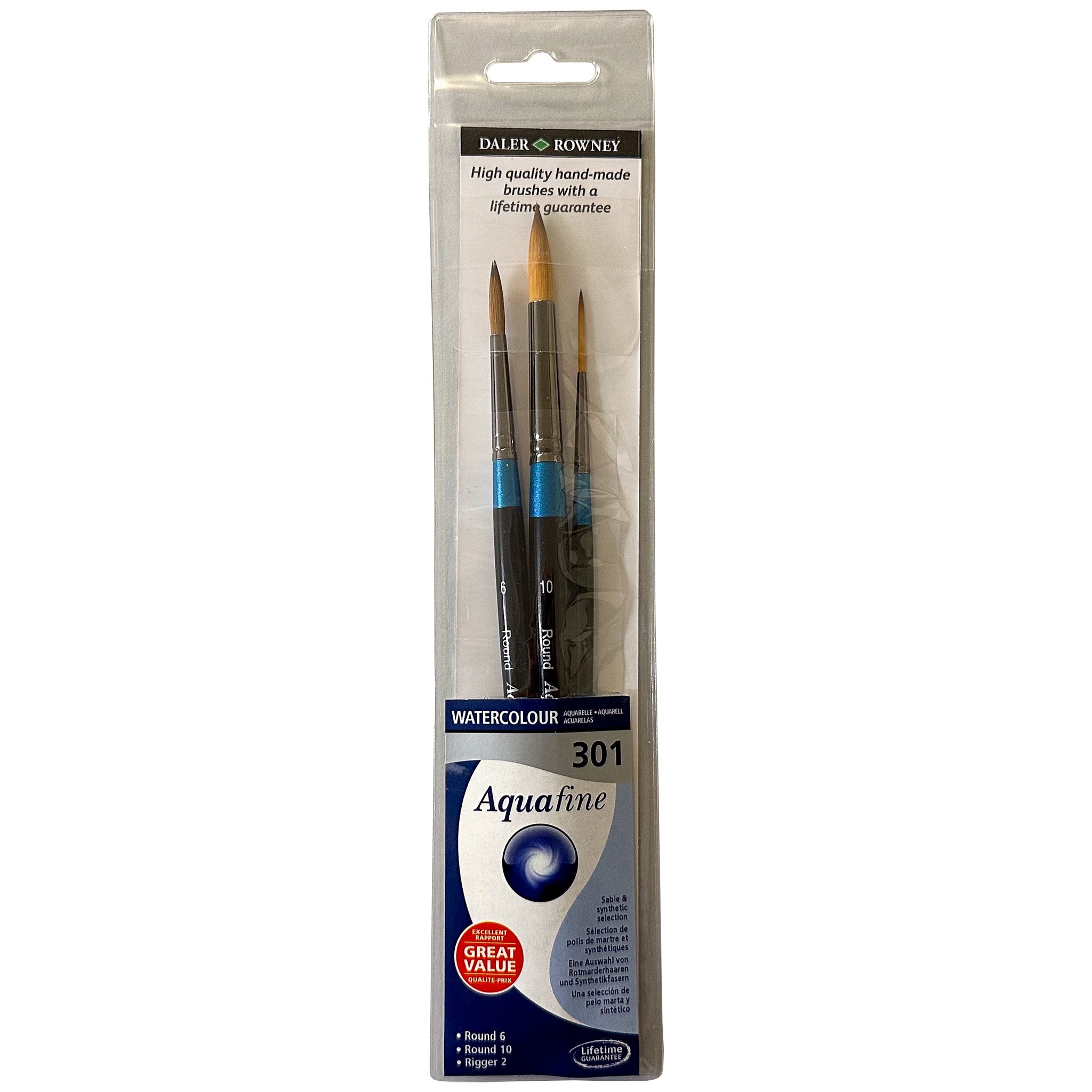 1 set of 301 Daler Rowney Aquafine Brushes: 1 x Round 6, 1 x Round 10, 1 x Rigger 2