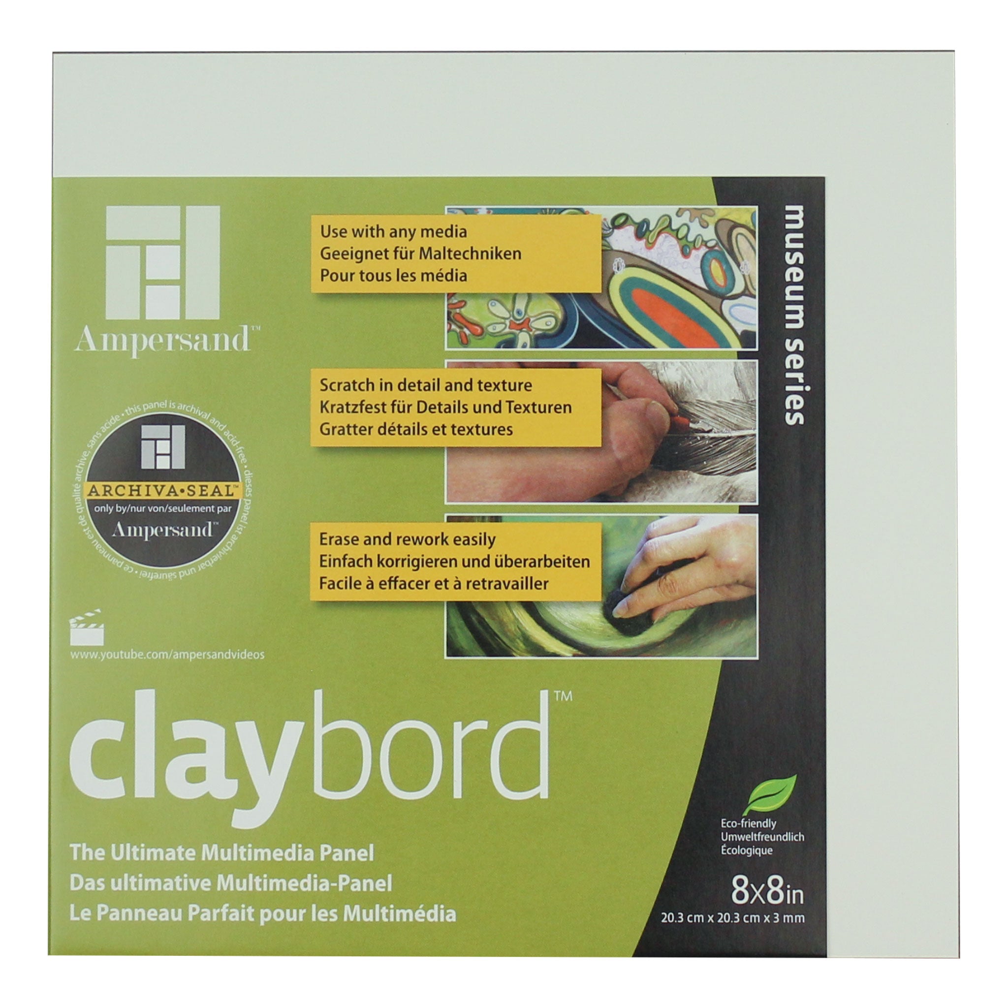The Ampersand Claybord is favoured by fine and graphic artists as you can use an array of techniques and tools on it’s clay surface. The panels themselves are acid-free and 3mm deep allowing for ease of storage and framing. The panel is perfect for use with Oil & Acrylic Paints, it can be used with most mediums including Modelling Pastes, Gloss & Matt Mediums and Texture Gels.Our Star Rating