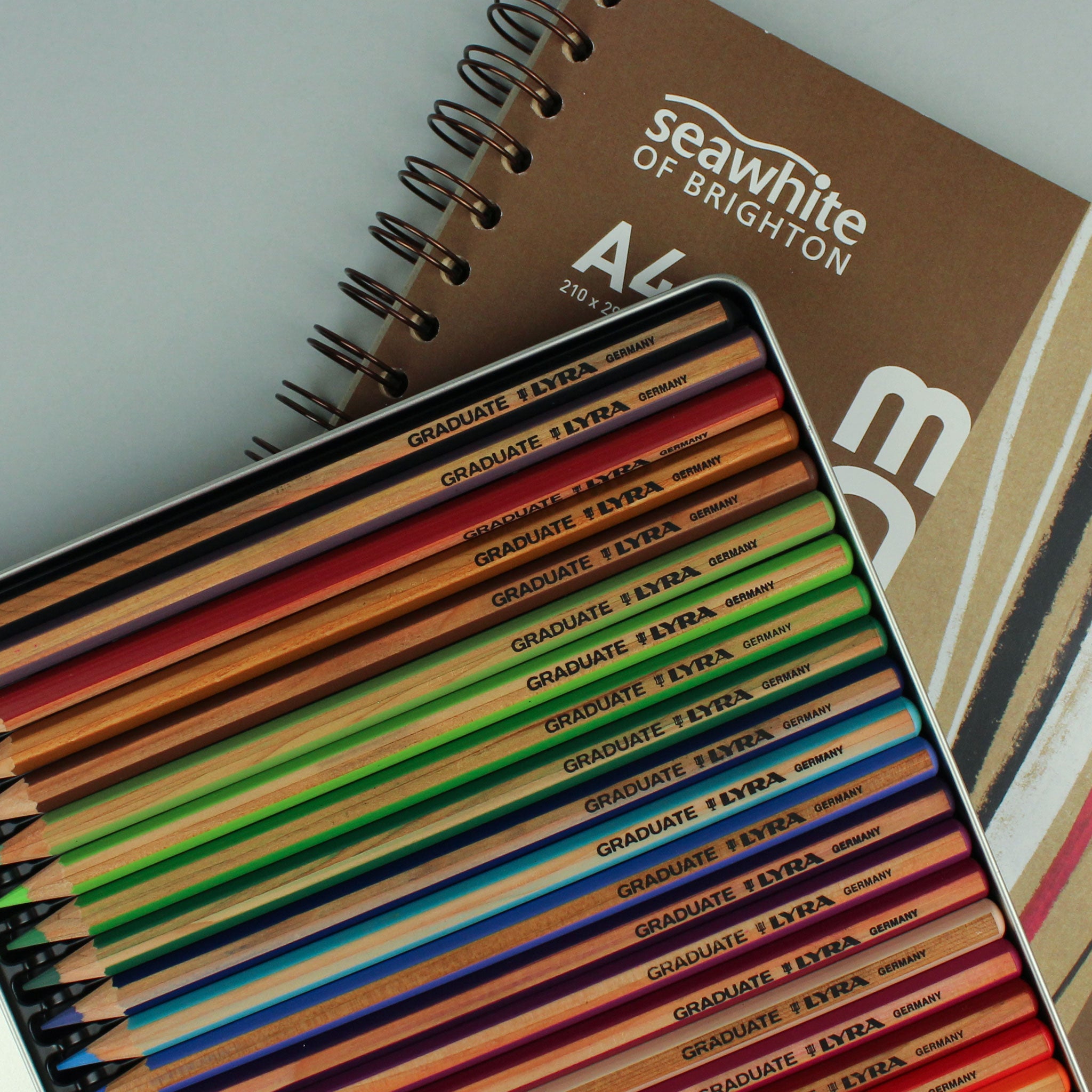 This Lyra Graduate set of 24 Colouring pencils have a high pigment content and are rich in colour. They feature a 3.8mm lead made from cedar wood for ease of sharpening and less breakage. Suitable for artists of any level, the smooth quality of the colours allows for fine detail or large abstract works. Stored in a tin, this protects and preserves your pencils during transportation.
