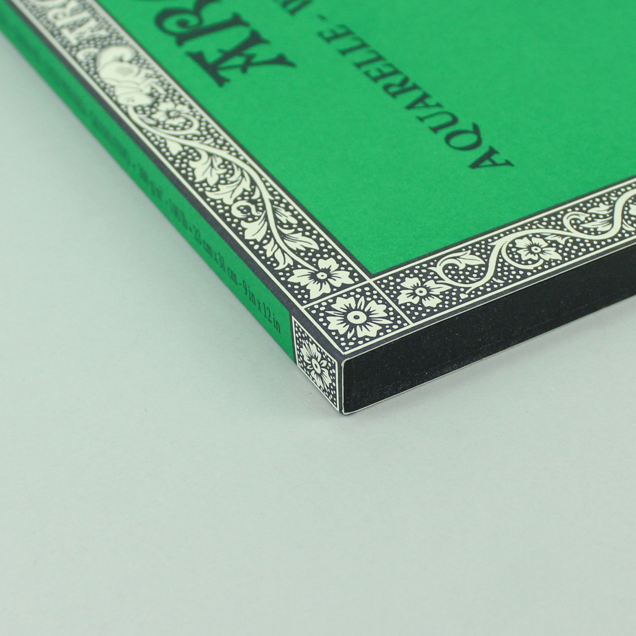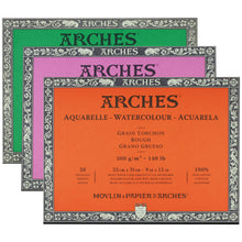 Arches Aquarelle Blocks are cut-edge which provides a clean edge to the paper. The cover is paperback, easy to remove and acts more as a basic cover for the paper. The pad is glued on four sides and pages can be easily removed for stretching with a kraft knife. The pad can also open-flat. The block is thick and a great accessory if you are interested in trying Watercolour and is a great work surface for an artist looking to explore higher end materials in their process. The blocks are available in 12 x 9 Inch and 16 x 12 Inch sizing.