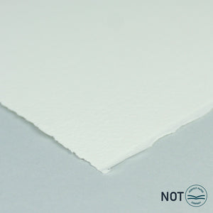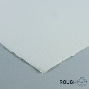 Watercolour paper is available in three textures. Cold press or ‘Not’ which has a slight texture, Rough which has a heavily textured and sometimes uneven surface, and Hot press which has a smooth even surface.