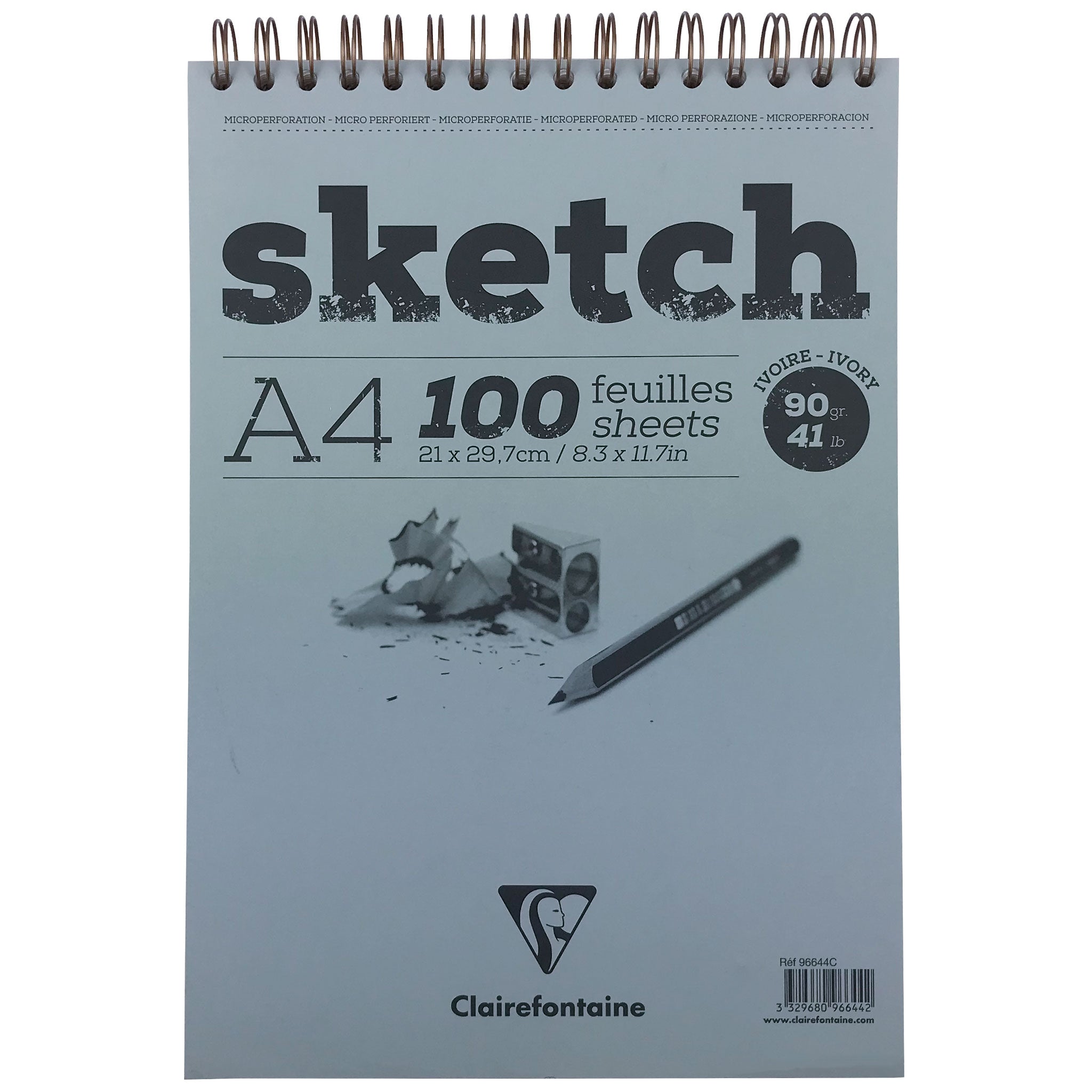 The Clairefontaine Sketch Pad is cut-edge which provides a clean edge to the paper. The cover is paperback with a cardboard back to provide a harder surface to work on. The bind is a flip-top spiral and has a perforated edge which produces a straight edge when ripped out of the pad; it can also open-flat. It is a thick book and is ideal for students and artists of any level.