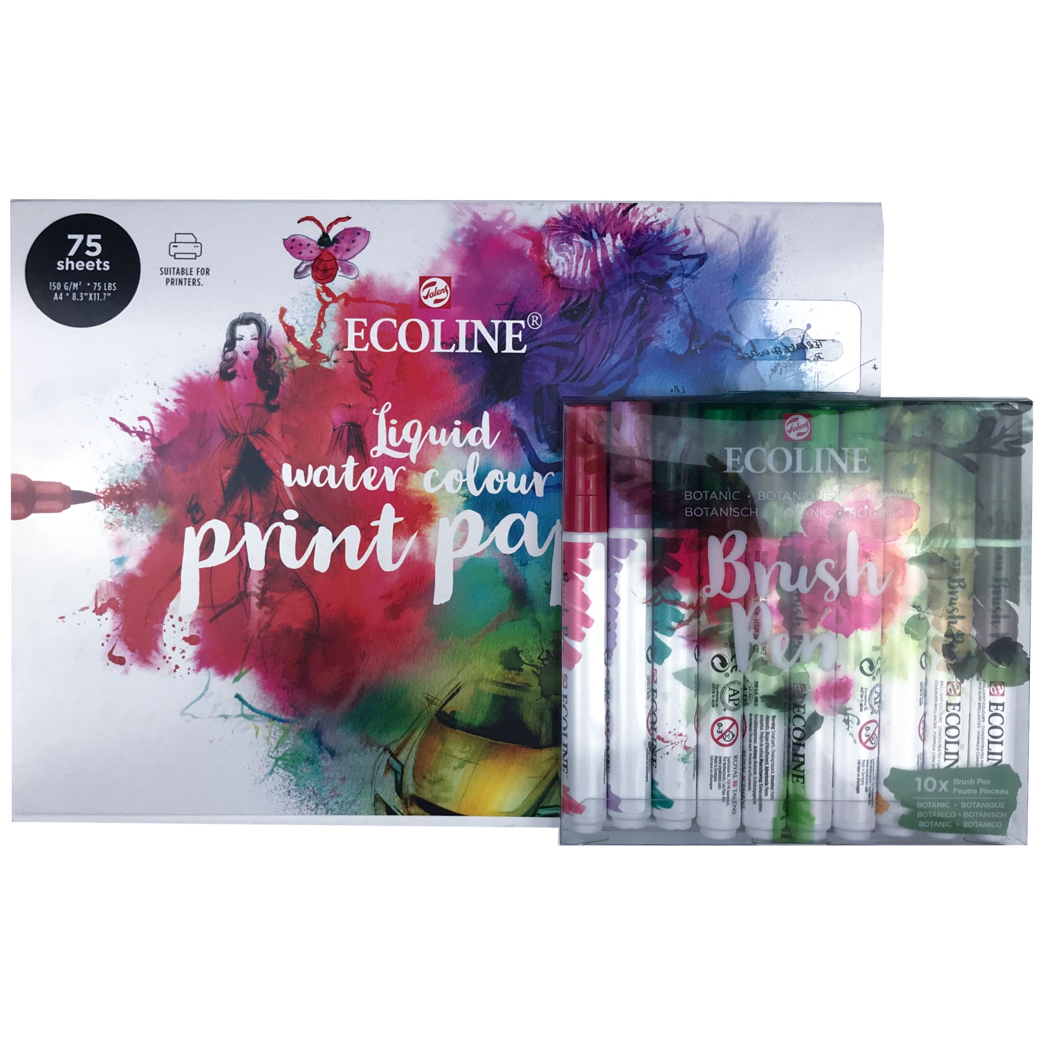This exclusive bundle deal comes with the Watercolour Printer Pad, and your choice of Ecoline Brush Pen Pack. Ecoline Brush Pens are filled with a liquid watercolour Ink that can be blended and mixed to produce unique effects on the paper's surface. Ecoline Brush Pens are Ideal for Illustrators, Fashion Designers and Manga Work.