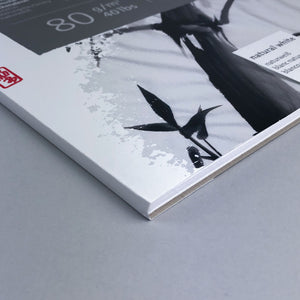 The pad is available in 24x32cm sizing and contains 20 individual sheets. The pads are available in a glued bind, both variants also feature a softcover to make it easier when tearing sheets out. The Sumi-E sheets are separated with a layer of tissue paper to protect the paper for use.