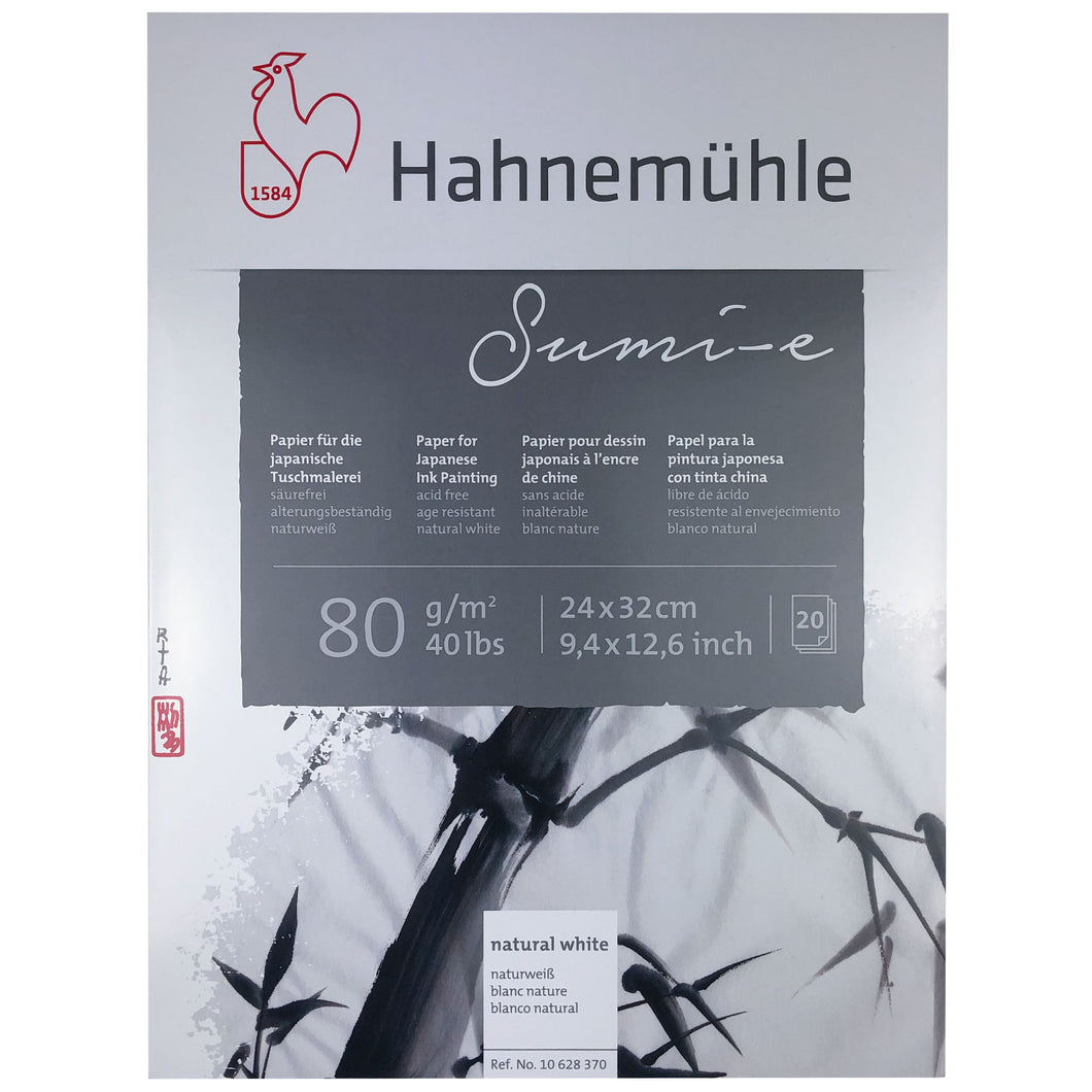 Hahnemühle Sumi-E Paper Pads contain 20 specialised Sumi-E sheets and are designed to be used with Japanese Sumi-E Ink. These sheets have a neutral pH size (internally) which makes them genuinely acid-free. The paper has a slightly textured finish giving the surface a nice amount of texture. Available in one weight at 80gsm (40lbs).
