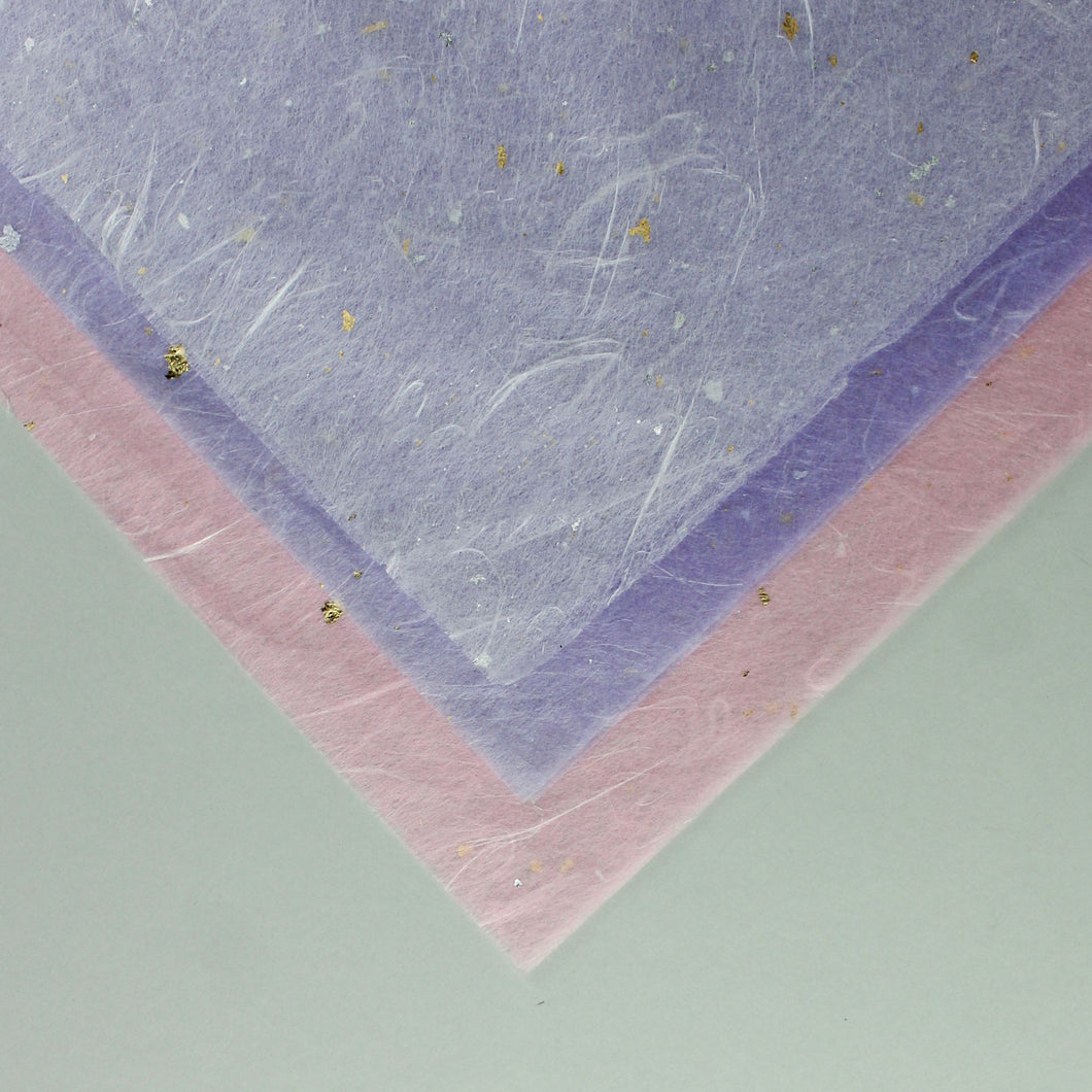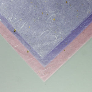Sanwa Tissue Paper is made in Japan. The paper consists of a thin, translucent sheet adorned with flecks of gold and silver in its surface. The paper is available in one weight at 9gsm and is smooth on its surface. There are three colour varieties available with White, Pink and Lilac. Each sheet comes at 63.5 x 85cm in size.