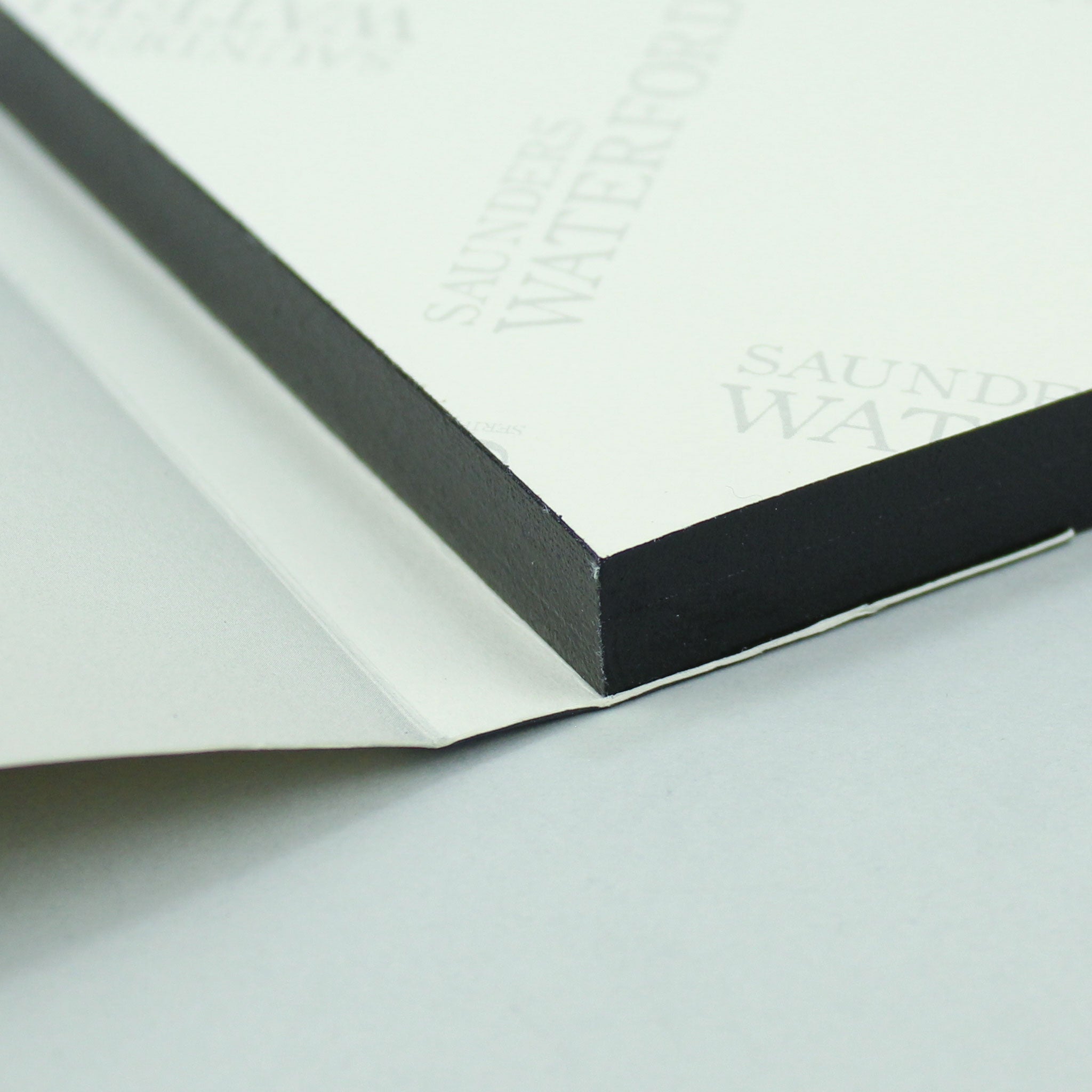 Saunders Waterford High White Blocks are cut-edge which provides a clean edge to the paper. The cover is paperback, easy to remove and acts more as a basic cover for the paper. The block is glued on four sides and pages can be easily removed for stretching with a kraft knife. The watercolour block can open-flat, is thick and a great accessory if you are interested in trying Watercolour. It is a great work surface for an artist looking to explore higher end materials in their process. These blocks are available in 9”x12” and 12”x16” sizing.