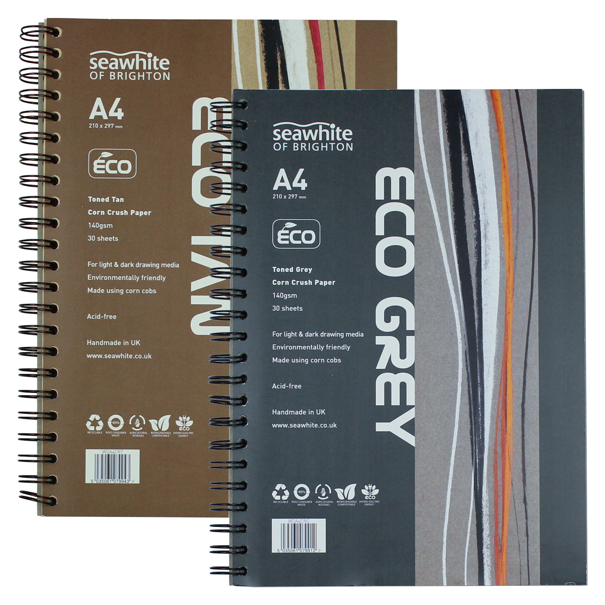 Seawhite of Brighton Eco Sketchpads are handmade using high-quality materials within the UK. The pad contains 30 pages made with organic waste such as corn cobs using hydro-electric power, making them environmentally friendly paper that is FSC approved. These sheets are ECO innovative ecological papers that are genuinely acid-free. Each page is 140gsm which can be used for sketching, drawing and all dry art techniques. The paper is smooth with a slight texture and comes in a grey or brown colour.