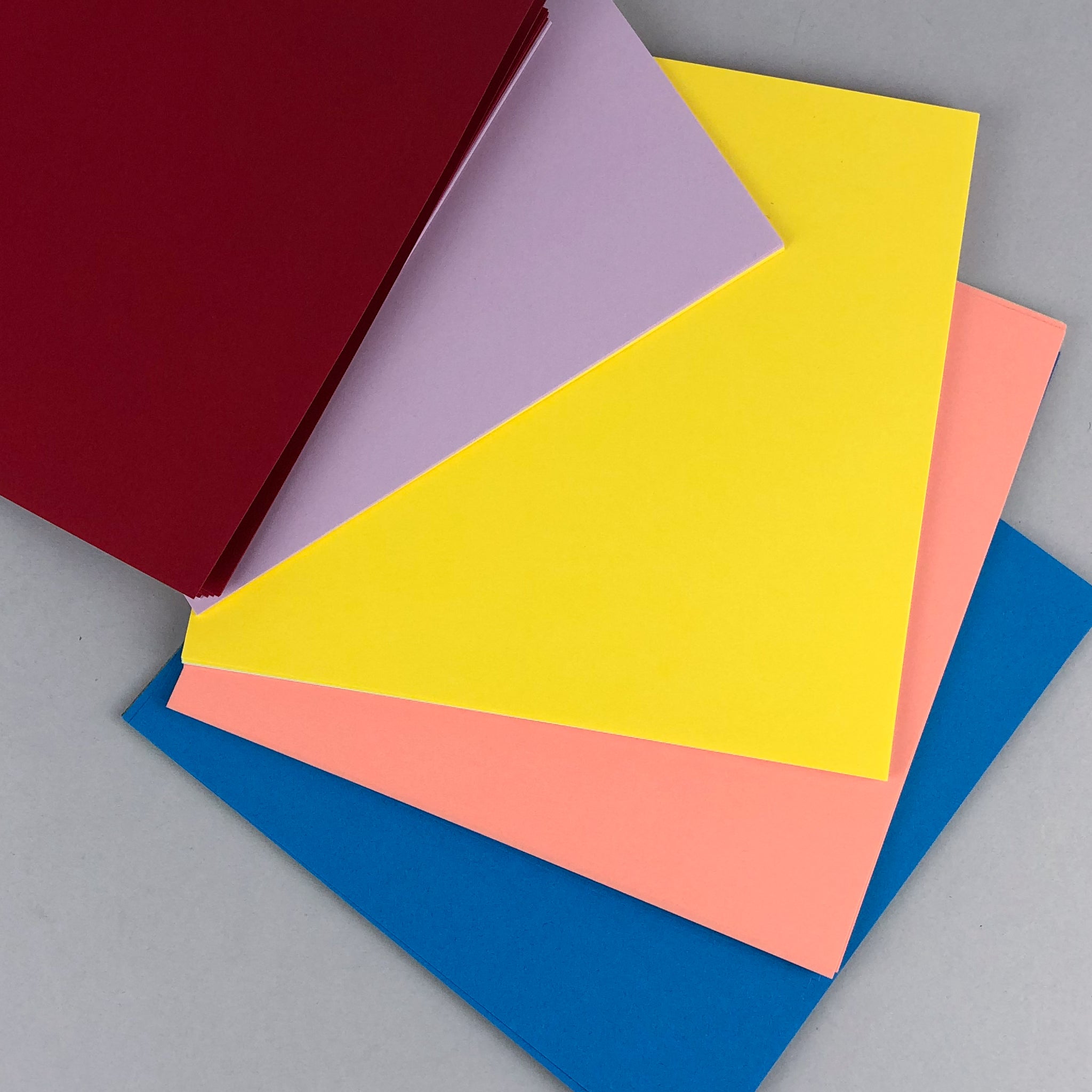 10 sheets of each of the following colours: Light Pink, Light Blue, Lilac, Mint Green, Pale Lemon, Yellow, Red, Coral, Blue and Green.